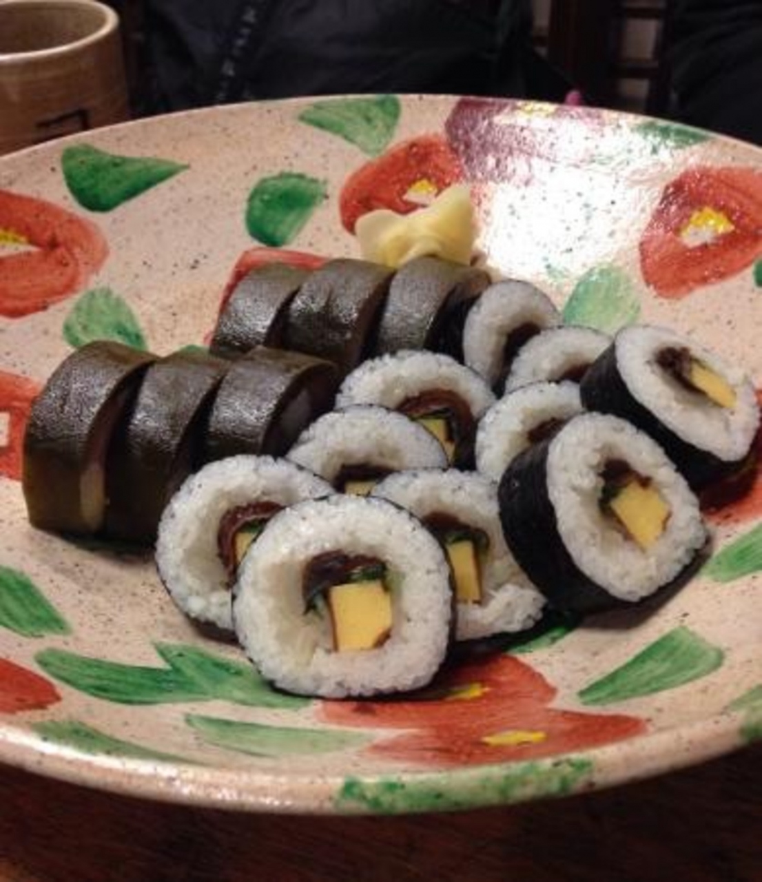 2人でビールとこの二品のオーダーでしたがボリューム満点で食べ切れず、鯖寿しだけお店で食べて海苔巻きは持ち帰りにしてもらいました。