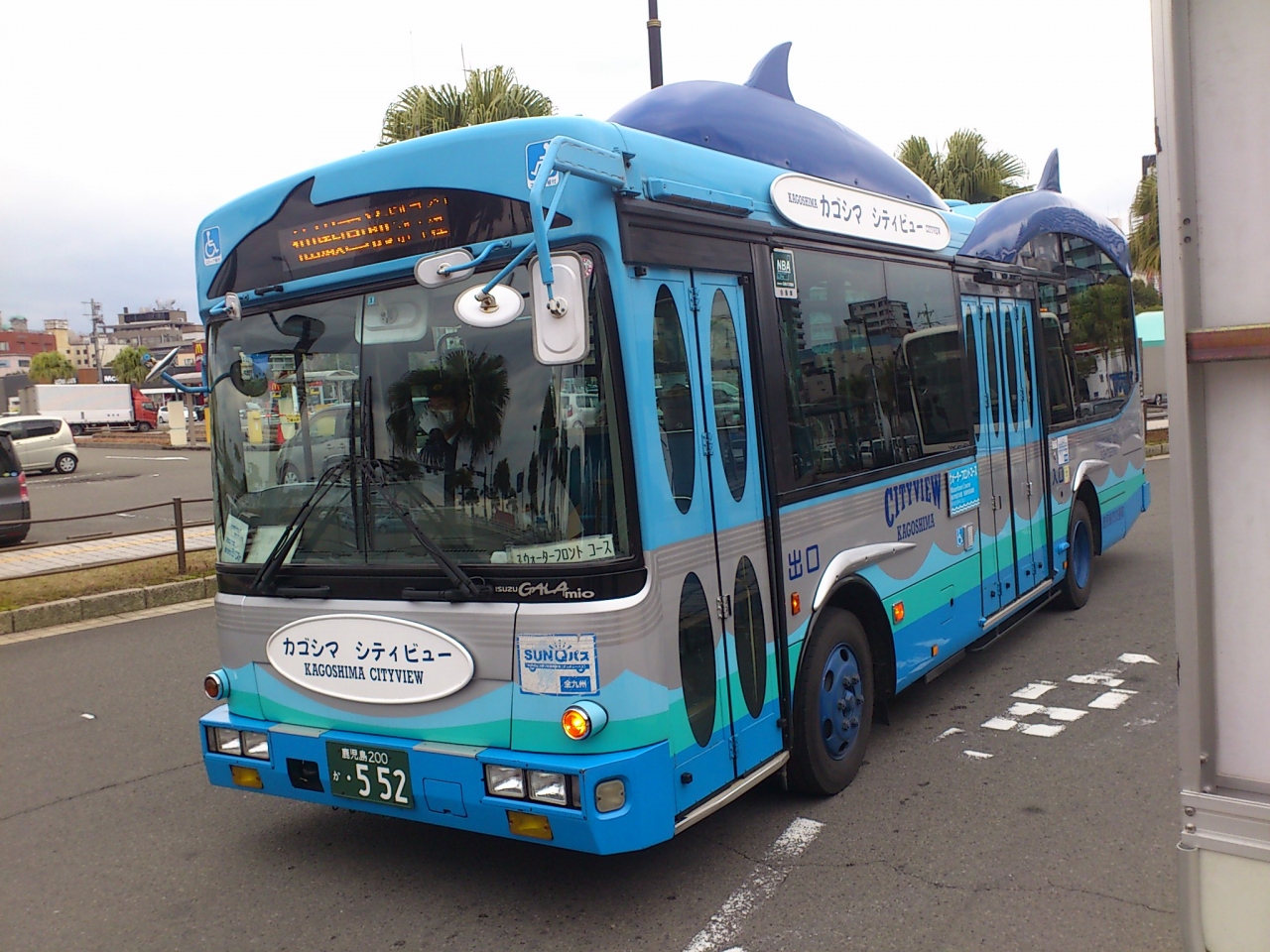 600円を払って1日券を購入すると、カゴシマシティビューのバスだけでなく路面電車も乗ることが出来るので、桜島以外の鹿児島の見所は全てこれでカバーできます。昼間は城山コースとウオーターフロントコースの2系統が走っています。メインの城山コースは30分毎に走っています。一部の路線が重なりますが、逆周りです。