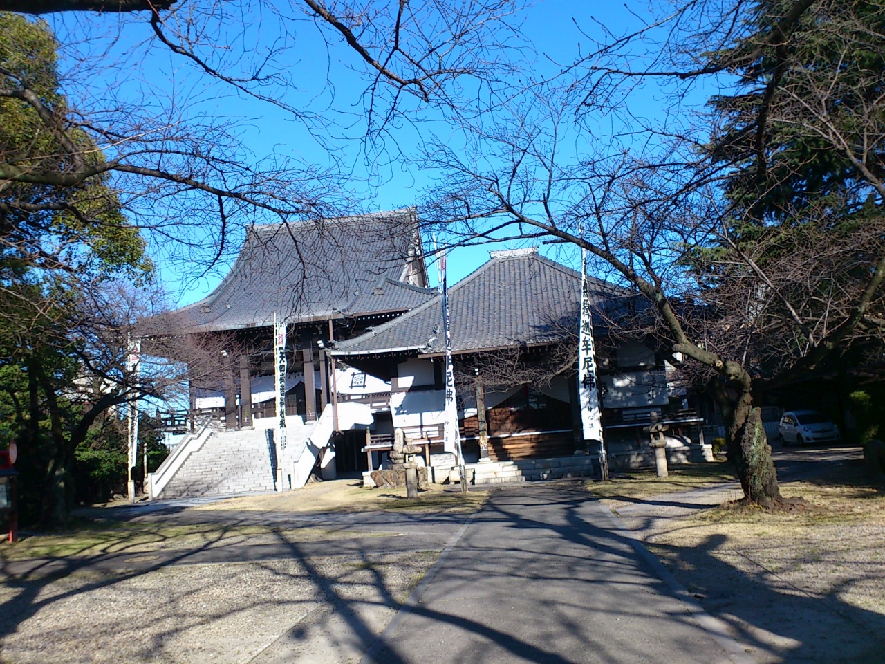 熱田神宮から白鳥庭園まで、住宅街の中を突っ切って歩いて行った時に見つけたお寺です。住宅街の中に不釣り合いな大きなお寺でしたので、思わず境内に入ってしまいました。日蓮宗のお寺です。桓武天皇の勅命によって伝教大師最澄が熱田神宮境内で法華経を読んだことから始まったお寺だそうで、とても歴史あるお寺です。法華堂と本堂と2つの建物が立派です。