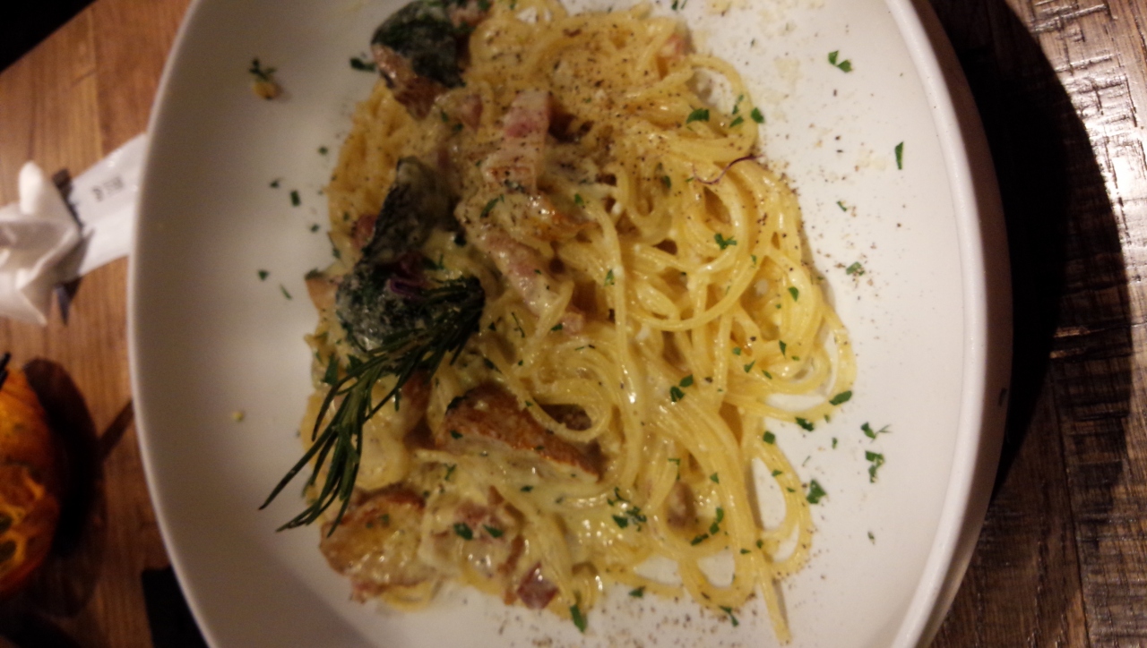 メニューはパスタがメインで、ハンバーグやグリルチキンがあります。