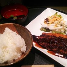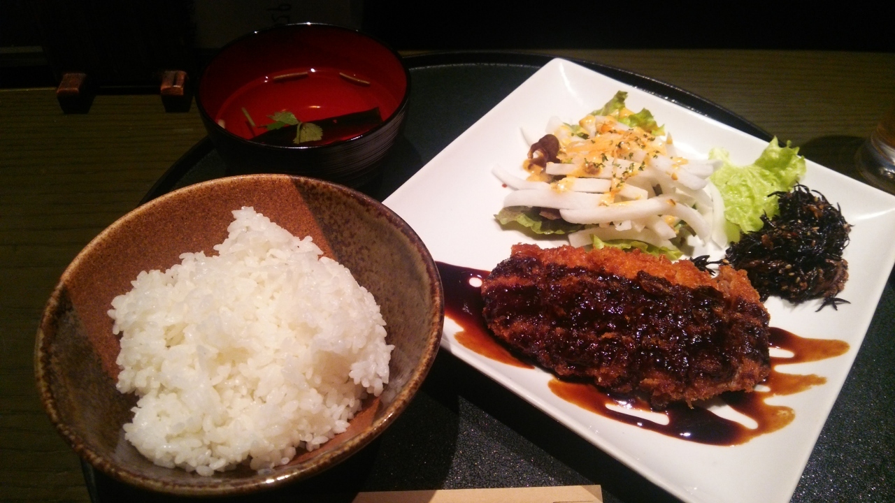 JR高槻駅と阪急高槻市駅の間の飲み屋の多い通りにあるお茶漬けメインの居酒屋さんです。カウンター席中心のお店です。お昼にはランチをやっており時々利用します。今回食べたのはミルフィーユカツ。揚げたてさくさくで美味しいですね。