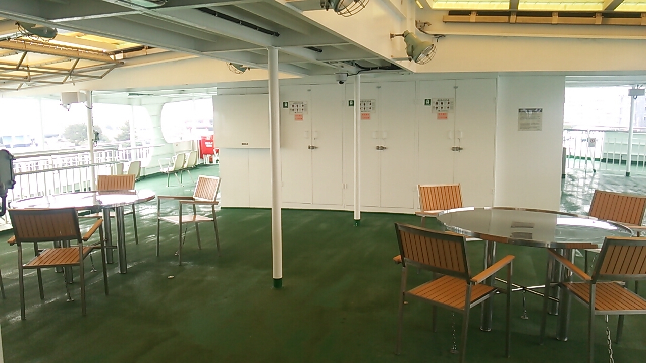 この第二桜島丸、2015年4月にデビューしたらしく、船内は白を基調とした明るい内装をしていました。
