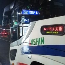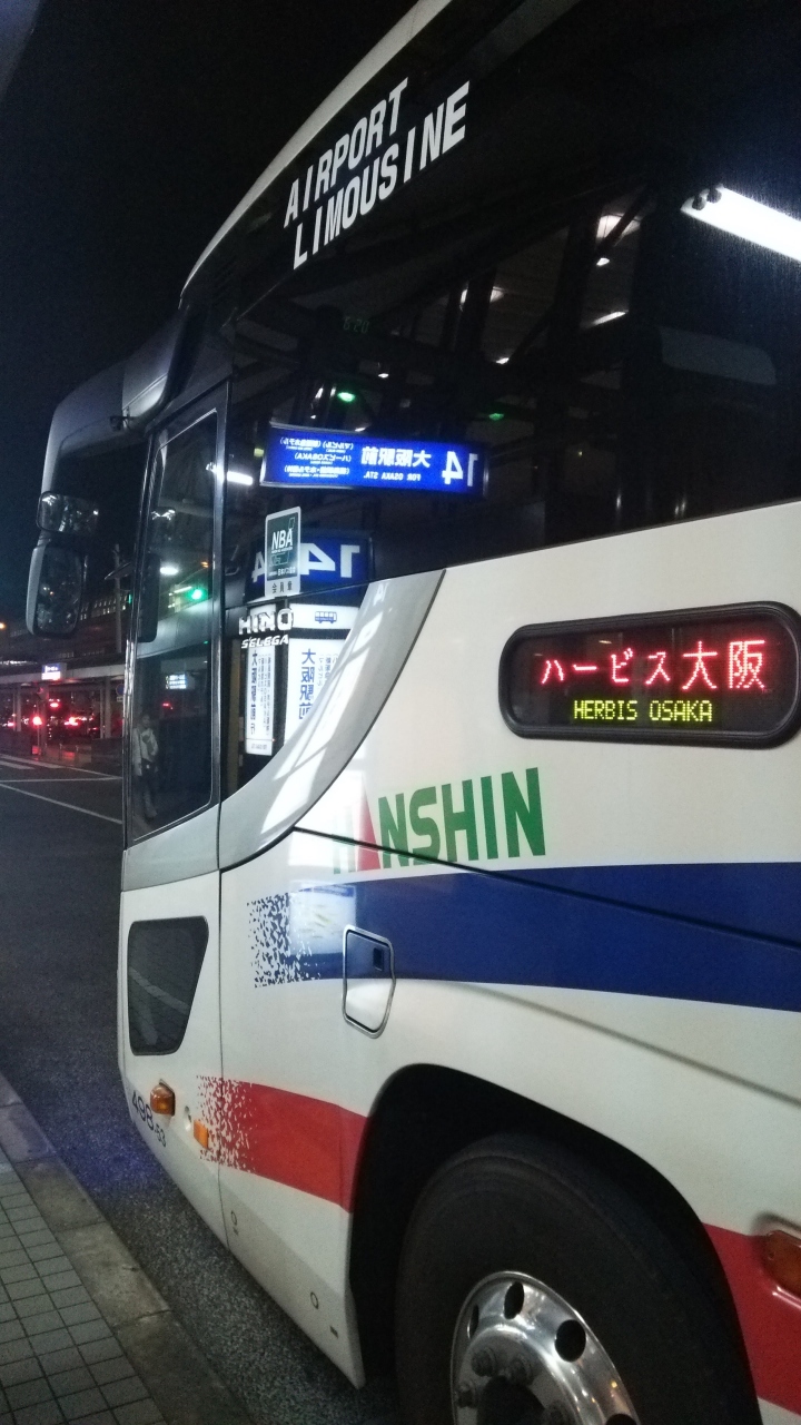 大阪空港から西梅田に行くのでこちらの梅田行きリムジンバスを利用しました。乗るときは切符を買うか、ICOCAかPITAPAですとそのまま乗ることできます。ハービス方面に行くので混んでいなくて25分ぐらいでつくので便利でした。