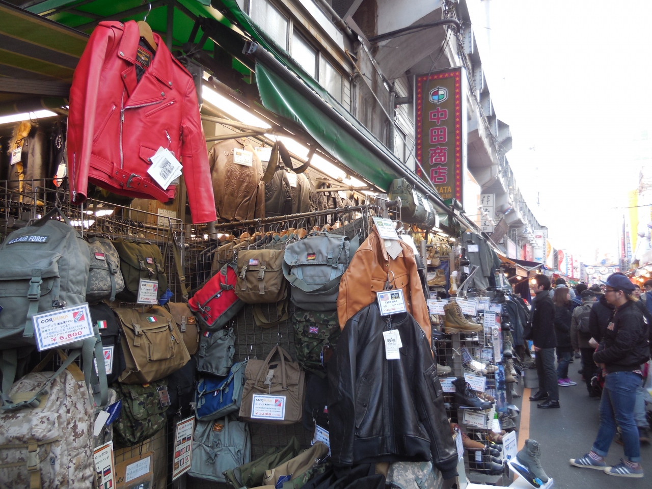アメ横の顔の一つといってもいいミリタリーウエアがとても豊富なお店。買い物をする予定がなくてもついつい中で商品を眺めてしまいます。帝国陸海軍の制服や帽子だけではなく、世界各地の軍隊の制服類が所狭しと並べられており、国内で随一の品揃えと言っても過言でありません。