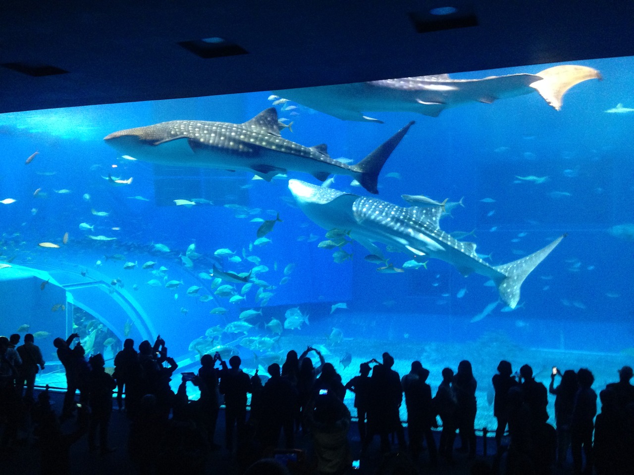言葉にできないほどきれいな海に面し、花壇やお花で作ったタツノオトシゴや亀がお迎え。頭上をジンベイザメが3匹、つれだったておよぐ姿は、ダイナミック。水槽であることも忘れそう。元気一杯のイルカたちのジャンプも感動!