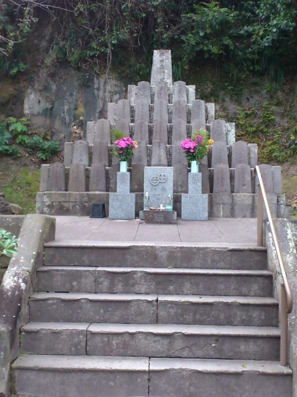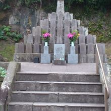 徳川幕府の命令で、尾張と美濃の国に流れる揖斐川、長良川、木曽川の3つの川の治水難工事に携わった人々のために建てられた石碑です。かなりの難工事で80名以上が命を落としたということです。城山展望台へ向かう道路の入口の左側にあります。将棋の駒のような形をした石碑の集合です。