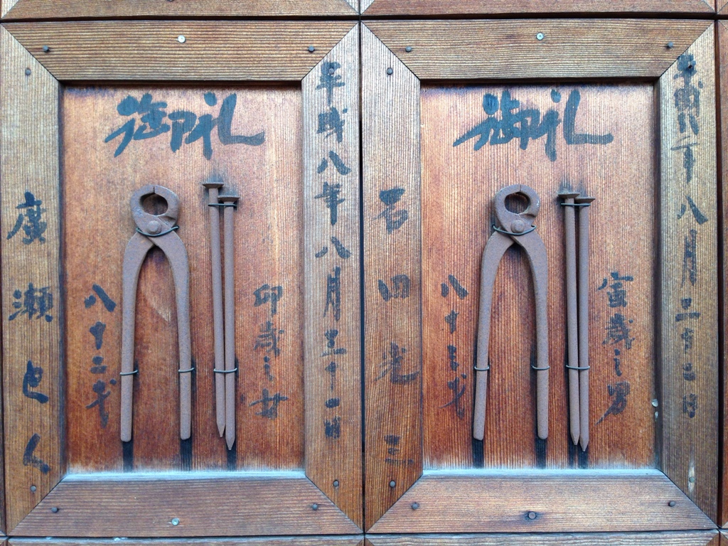 千本通りを上がり右手にあります。「釘抜地蔵」?珍しい名前なのでどんな所かな、と思い行ってきました。空海の開基で正式には「石像寺」と言うようです。門を入ると整備された石畳が案内してくれます、そして境内は、釘とくぎ抜きでいっぱいです。ちなみに釘抜の語源は、苦を抜く・・・からきているようです。釘の無い時代から釘の有る時代への変化がそうしているのでしょう。