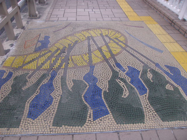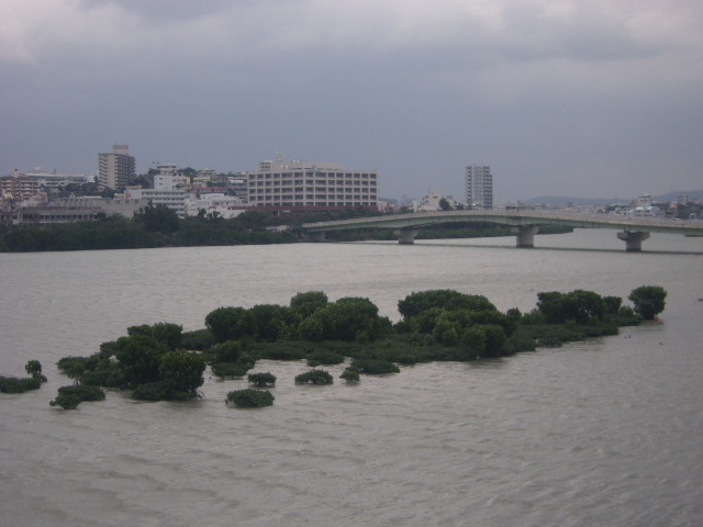 漫湖岸を一周するウォーキングの途中で通りました。ここはズバリ、対岸の古波蔵側のマングローブ林の横の広がりや、手前の浮島のようになっている景観などを楽しむのに素晴らしい場所で、是非ゆっくりと歩いて堪能して頂きたいスポットです。また、見逃してはならないのが、ここの歩道は結構広くレイアウトされていて、沖縄を代表するお祭りの様子などを描いた路上アートがとても見応えあって面白かったです。景観に囚われ過ぎて、これらのアートを見逃さないよう、是非足元もご注目しながら橋を歩いて渡ってみて下さい。