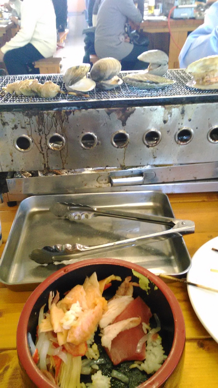 浜焼のお店ですが、どう見ても採りたての貝ではないですね・・・。