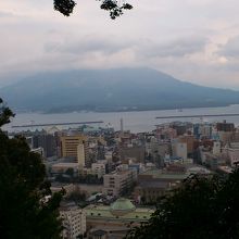 麓から遊歩道が整備されていますが、大変そうなので、カゴシマシティービューのバスに乗って頂上まで登りました。頂上の駐車場から何軒かのお土産物屋さんが並ぶところを過ぎ、遊歩道を少し行くと展望台に出ます。当日は展望台で工事が行われていて煩かったですし、桜島の頂上が雲に覆われていて残念でした。