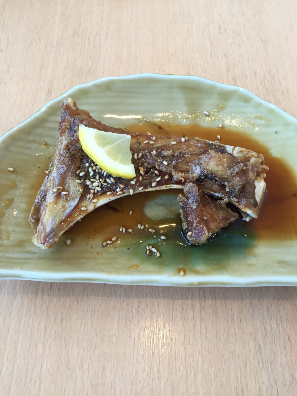 揚げたカマを、甘辛のたれで漬けこんだもので、名古屋の手羽先みたいな感じのまぐろバージョンです。