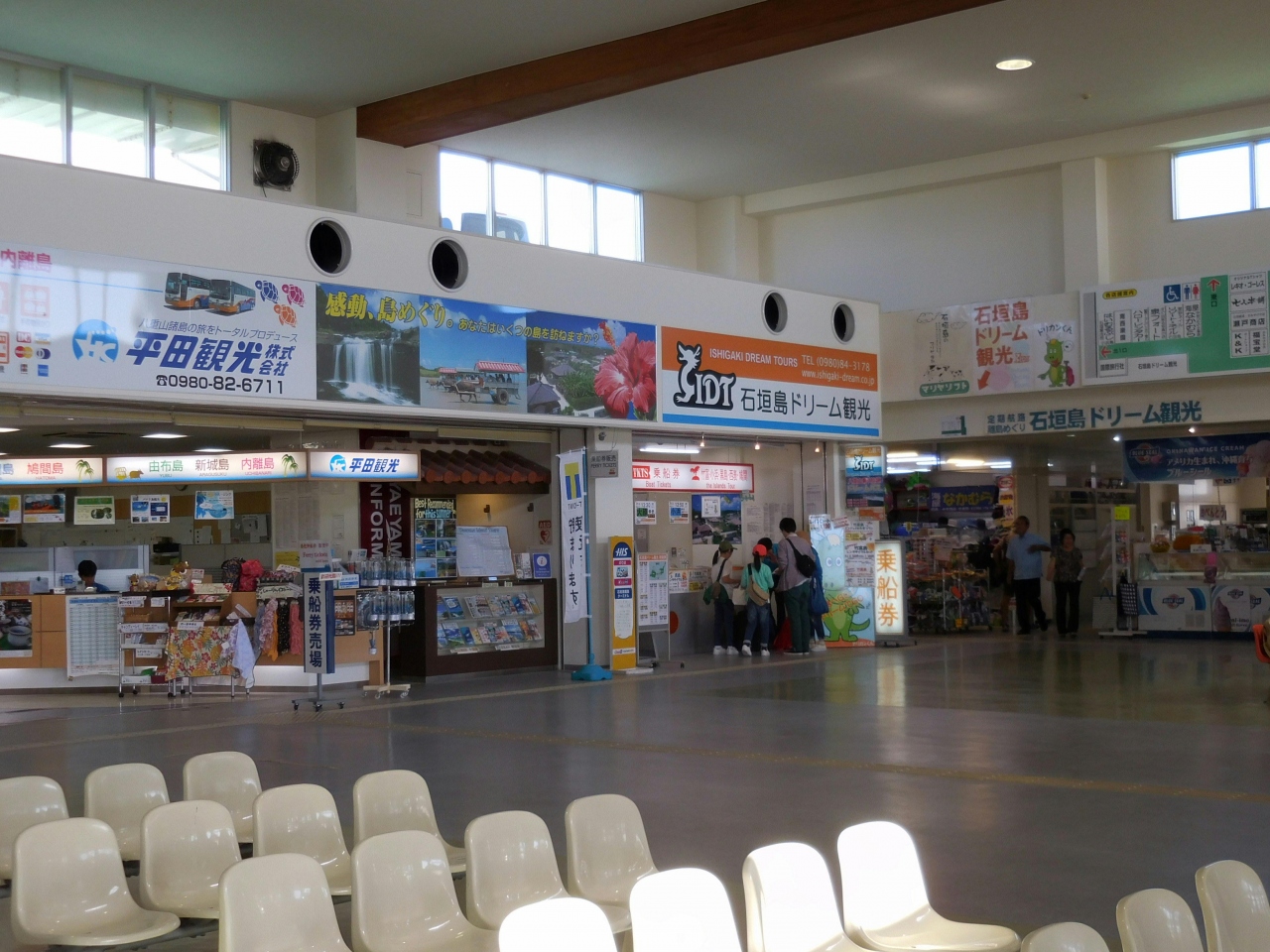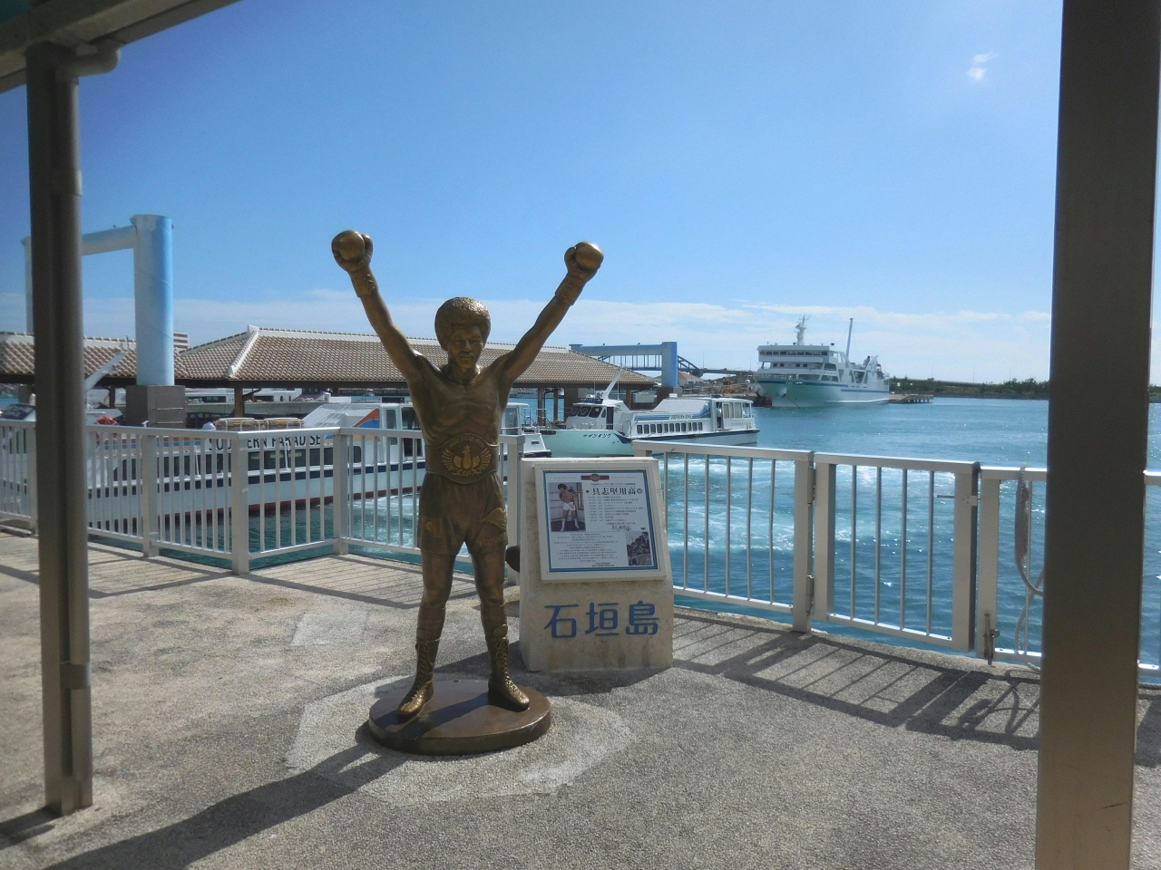 竹富島と西表島の大原港に行くため離島ターミナルは2回訪れました。離島ターミナルは竹富島・黒島・小浜島・西表島・鳩間島・波照間島への高速船乗り場で離島への玄関口になっています。石垣市の名誉 市民でもある具志堅用高の銅像がありました。今は、バラエティでとぼけたキャラですが、ボクシングのWBA世界Jr.フライ級チャンピョンで13度防衛をしているとても凄い人なんですね。船会社のカウンターやお土産店、飲食店などがありました。売店で買った石垣の「マリヤ牛乳」を使ったマリヤシェイクがとても美味しかった。トッピングソース(マンゴー、シークワーサー、チョコレート、シナモンキャラメル)が無料で選べます。食べるなら船を乗ったあとに食べた方が良いですよ!