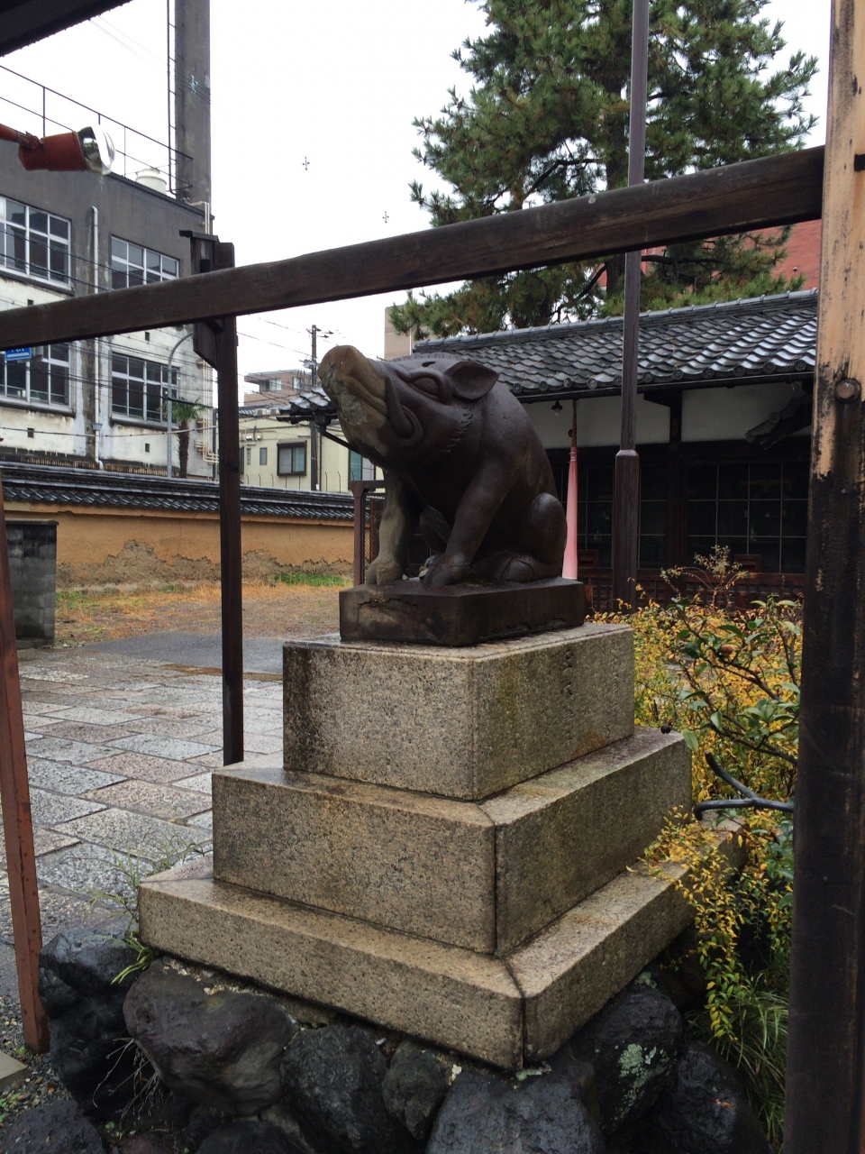 京都五山の一角、建仁寺にある禅居庵。広大な建仁寺からするとこじんまりしているのですが、とてもかわいらしい神使としての猪像が4対あるのです。おみくじもご覧のとおりで、猪の形をしています。おみくじをひいたあとに置いていく人も多数いるようですが、わたしは必ず持ち帰り大事にしています。