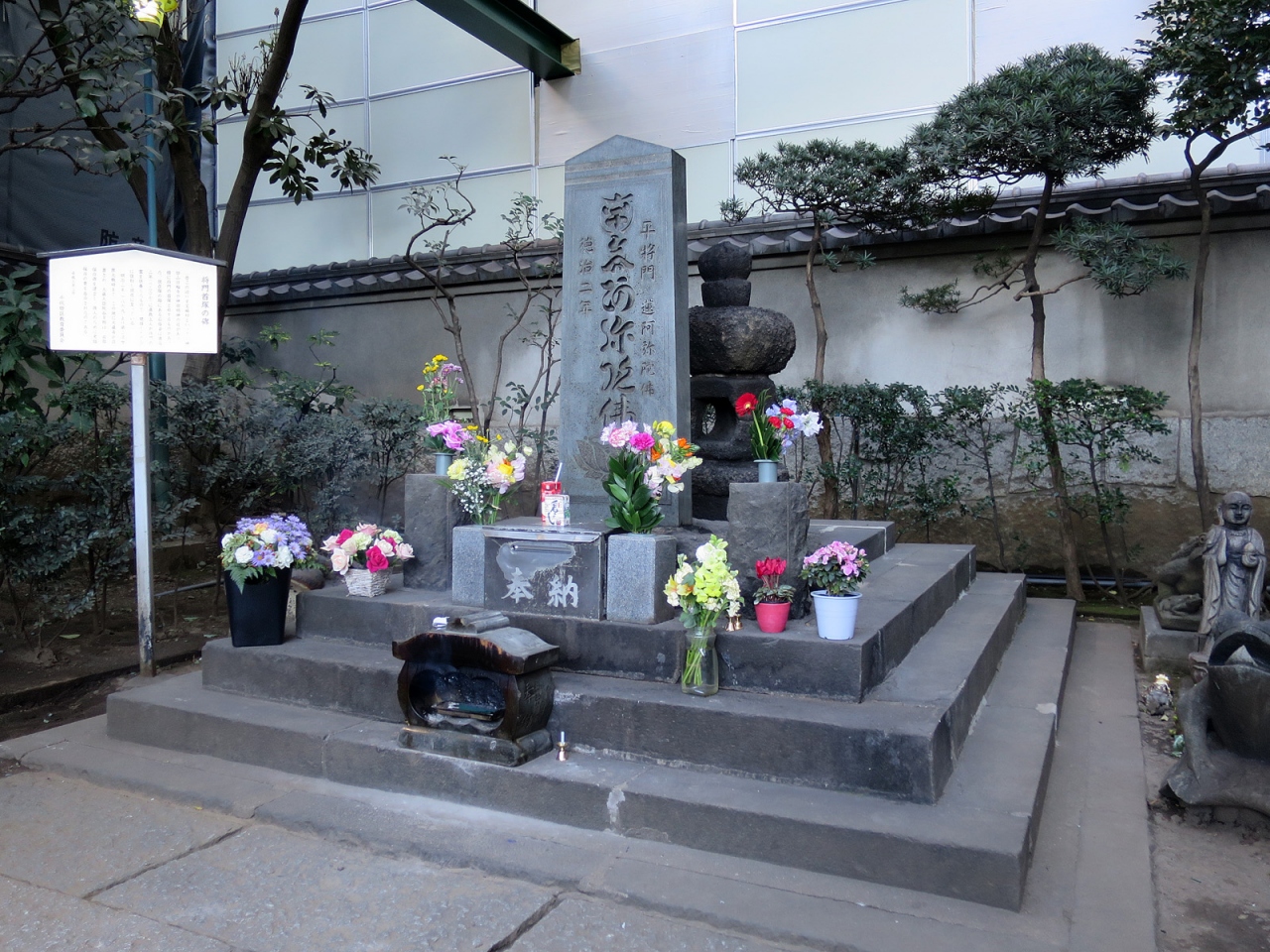 数々の逸話で知られる「将門の首塚」は、大手町の「三井物産ビル」と、これも三井が所有する「大手町パルビル」というビルに囲まれた一角にあるのですが、それにしては間口・奥行き共に敷地は広く、さすが別格といった雰囲気があります。2016年1月現在、その「三井物産ビル」・「大手町パルビル」共に、再開発に伴う解体工事中でしたが、工事は「将門の首塚」に砂塵などが降りかかったりしないように進行されているかのようでした。さて、世の中には霊能力者とよばれる人もいて、色々と感じたりもするらしいのですが、私などは凡人中の凡人で、何も感じられたことはありません。そんな鈍感力を持った私であっても、この「将門の首塚」を訪れると「う~ん、何かある」と思わされます。オフィス街の一角、平日の午前中という条件にあっても、お参りに訪れる人が絶えないというのも、やはり普通ではないですね。また案内板が5枚もあるなんていうのも珍しいですね。
