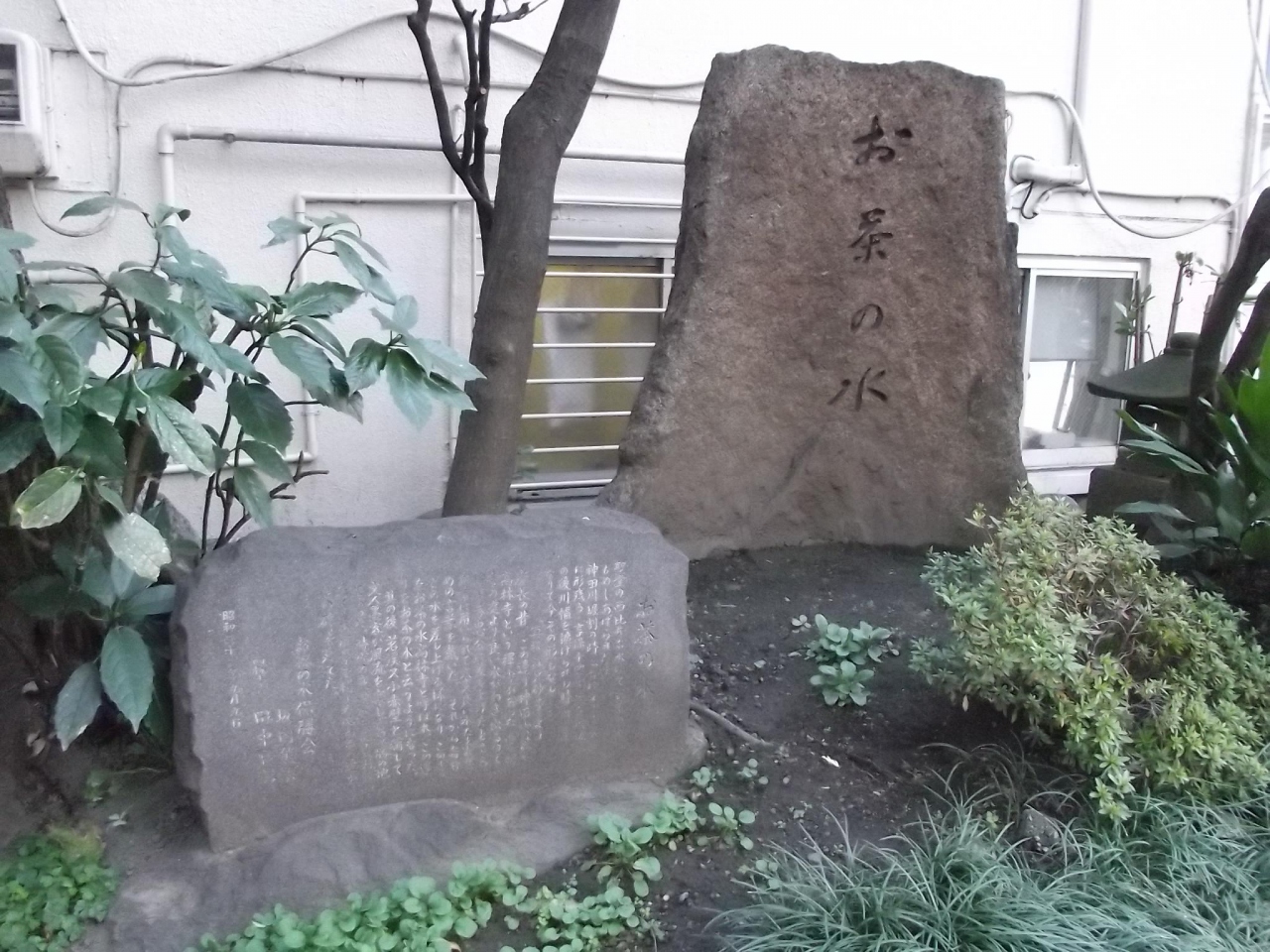 近くに お茶の水 の地名の由来が刻まれた石碑があります