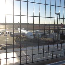 成田空港第1ターミナルの5階から外に出ることができます。フェンス越しですが飛行機を眺めることができます。早めに空港についてしまった時など、天気が良い時は時間つぶしの場所としてお勧めです。4・5階には複数の飲食店もあります。