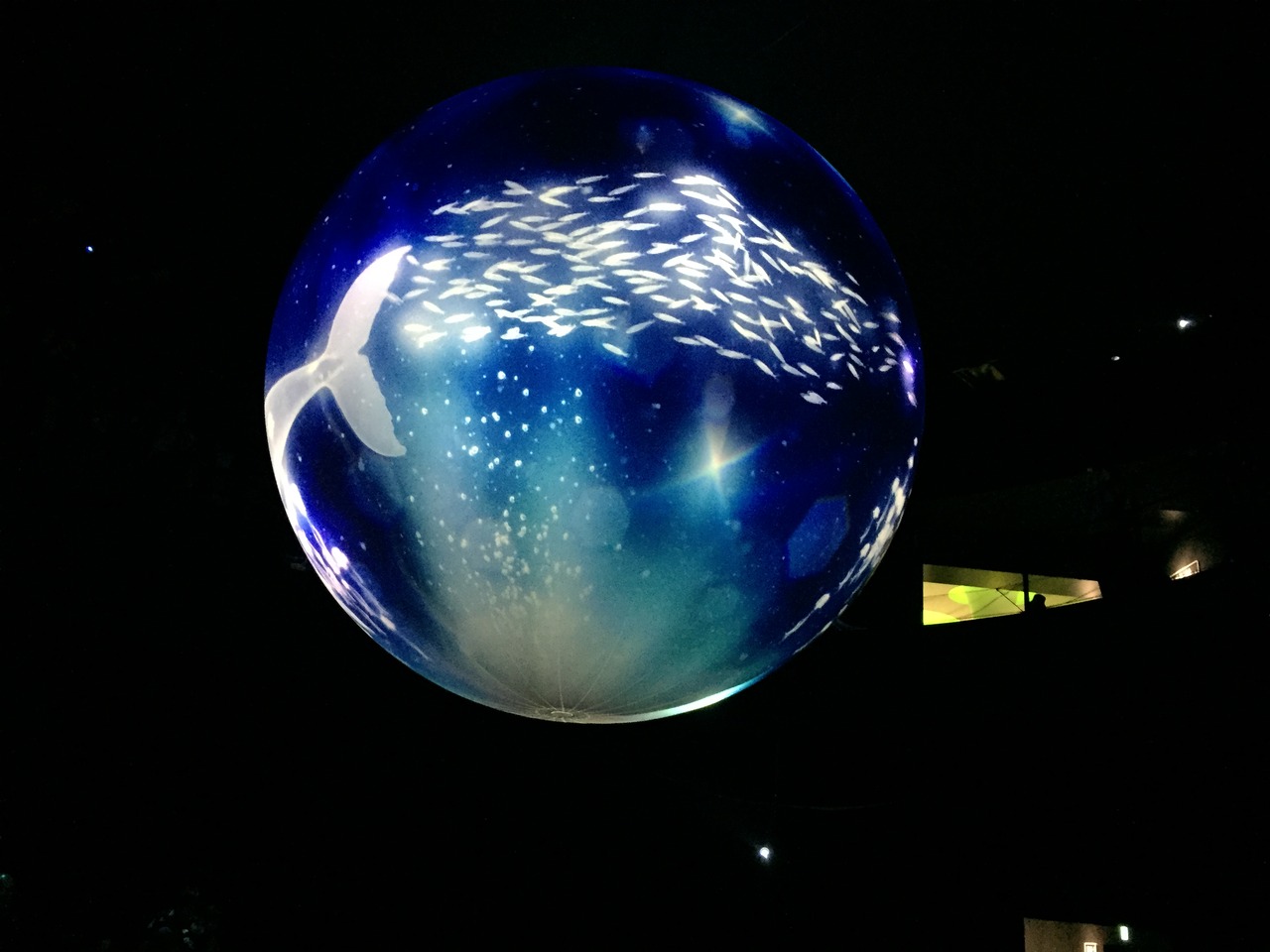 最初の方は魚やクラゲなどがいます。そして大きな地球の模型が天井から下げられ、次々と映像が映されていたのがずっと見ていても綺麗でした。