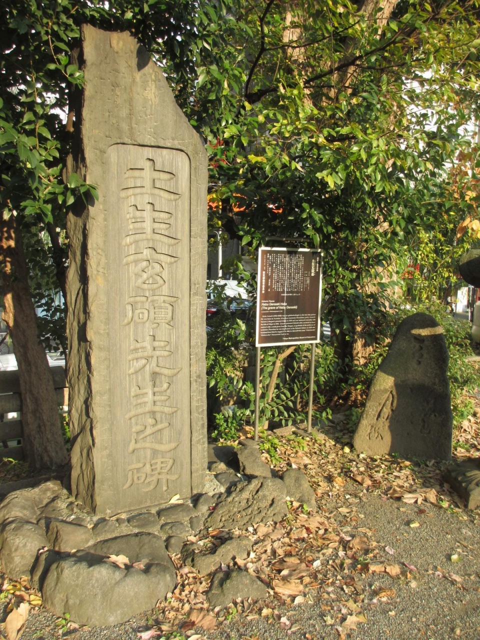 築地本願寺の境内に入って左の端まで進むと、碑が並んだ場所がありその中に、碑と説明板があります。土生玄碩は江戸時代後期の眼科医で十二代将軍徳川家慶の眼疾を治療した人ですが、シーボルト事件に連座して改易となり江戸を追放されたそうです。