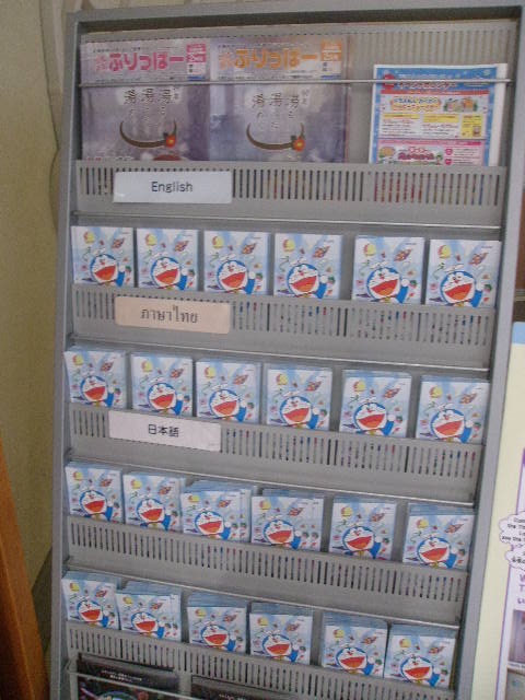 新千歳空港が”アミューズメントエアポート”として注目されるようになった象徴的な施設の一つがこちらで、現在では特に海外の観光客からの人気が高いようです。そう言えば、国際線Tの到着ゲートにも大きなドラえもんが設置されたりしていますが、こちらのパークには、ありきたりの英語や中国語のパンフ以外に、タイ語のパンフレットまで用意されていてびっくりしました。スタッフの人の話では、やはりTG(タイ国際航空)が新千歳に就航して以来、タイ人観光客も急増しているそうで、向こうでもアニメとして有名になっているドラえもんは流石に人気があるようでした。