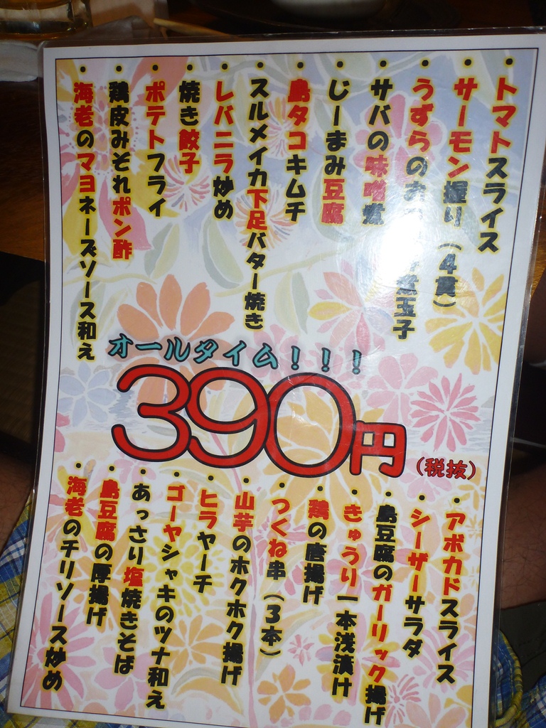 島食材から390円メニューまで食べ物の種類も豊富で、飲み物の価格もそれなりにリーゾナブル。ダイビングですいたお腹を十分に満たしてくれました。
