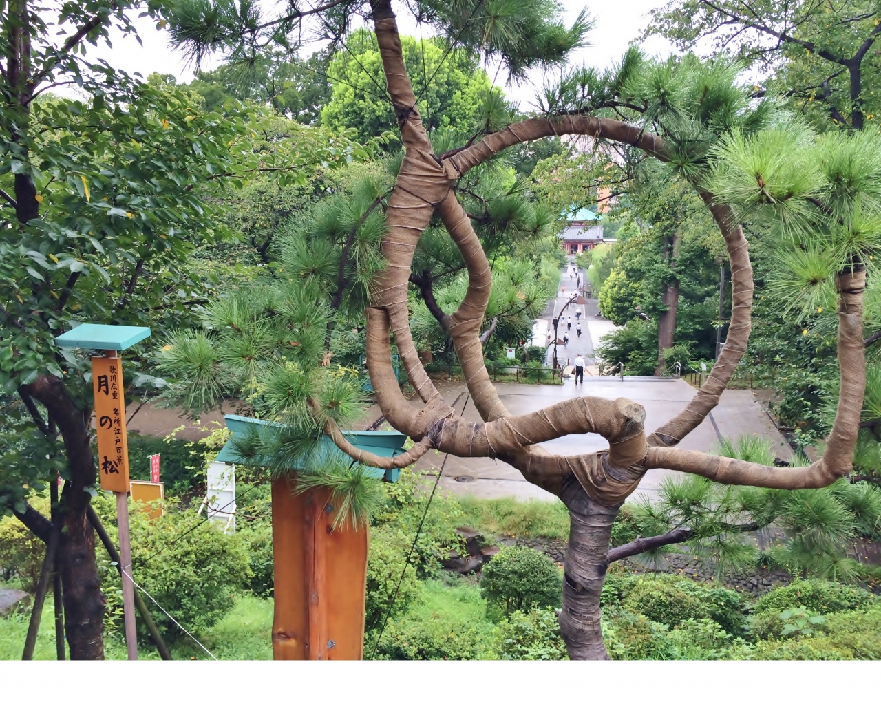 近年、浮世絵師・歌川広重の代表作「名所江戸百景」にも描かれた「月の松」が復活し、月の輪を通して不忍池の弁天堂が眺められます。