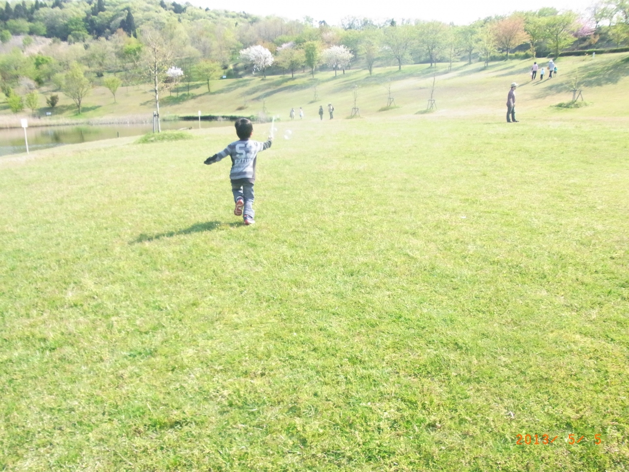 芝生の広場は、入場料を払わないでも遊ぶことができ、子供はめいいっぱい