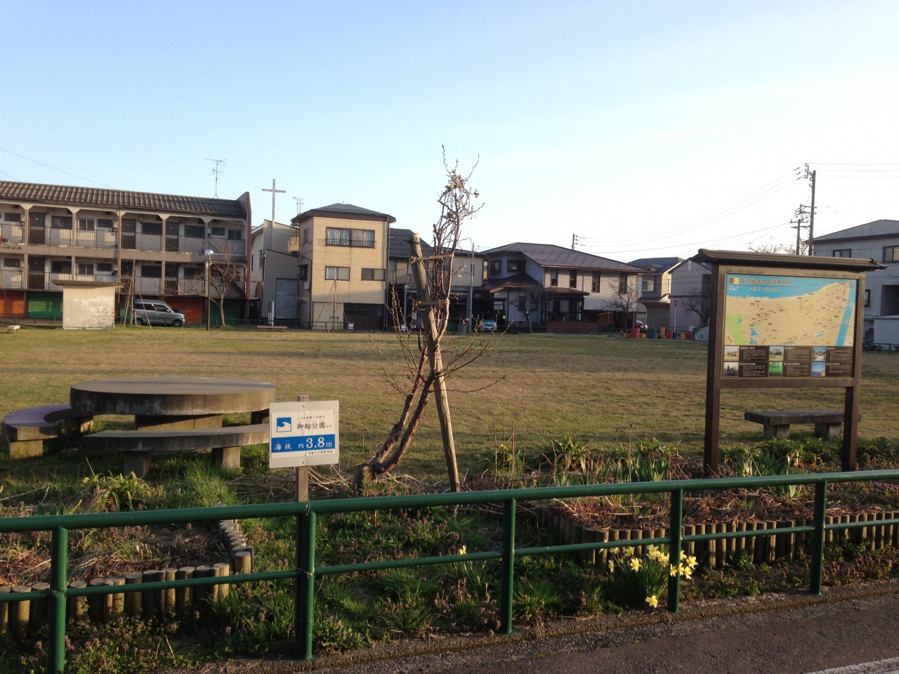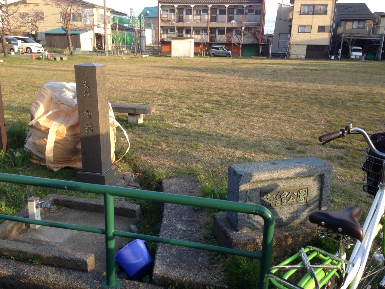 诚实的说这公园怎么看都是一块大空地,而且在我到达时这块空地上的草坪大面积枯黄,略显萧条,在空地的一侧设有少量简单的公园游乐设施,倘若对日本历史没有了解,谁会在意这再平凡不过的小公园呢。对我来说,这里却是来到直江津必须要造访的地方,四百多年前的战国时代,就在这里,发生了一场激荡越后乃至惊动了日本的特大风波。谦信公因脑溢血没有留下有关继任者的遗言便突然亡故,围绕着家主后继者的争夺,上杉家分裂为景胜、景虎两派,引发了令人哀叹的内乱。景胜捷足先登据守春日山城,景虎入驻御馆,双方展开对峙,最终景胜方获胜,这场险些将谦信公所建基业挥霍殆尽的越后大动乱史称“御馆之乱”,现在的御馆公园就是曾经御馆之乱的遗址。当时我走进御馆公园坐在石凳上稍事休息,这里没有任何特别的景致,除了史迹碑感受不到任何历史气息,终归在心里还是有些落差,不过也不必为此懊恼,我很清楚在那个安静的下午自己坐在这看似普通的公园内意味着什么。