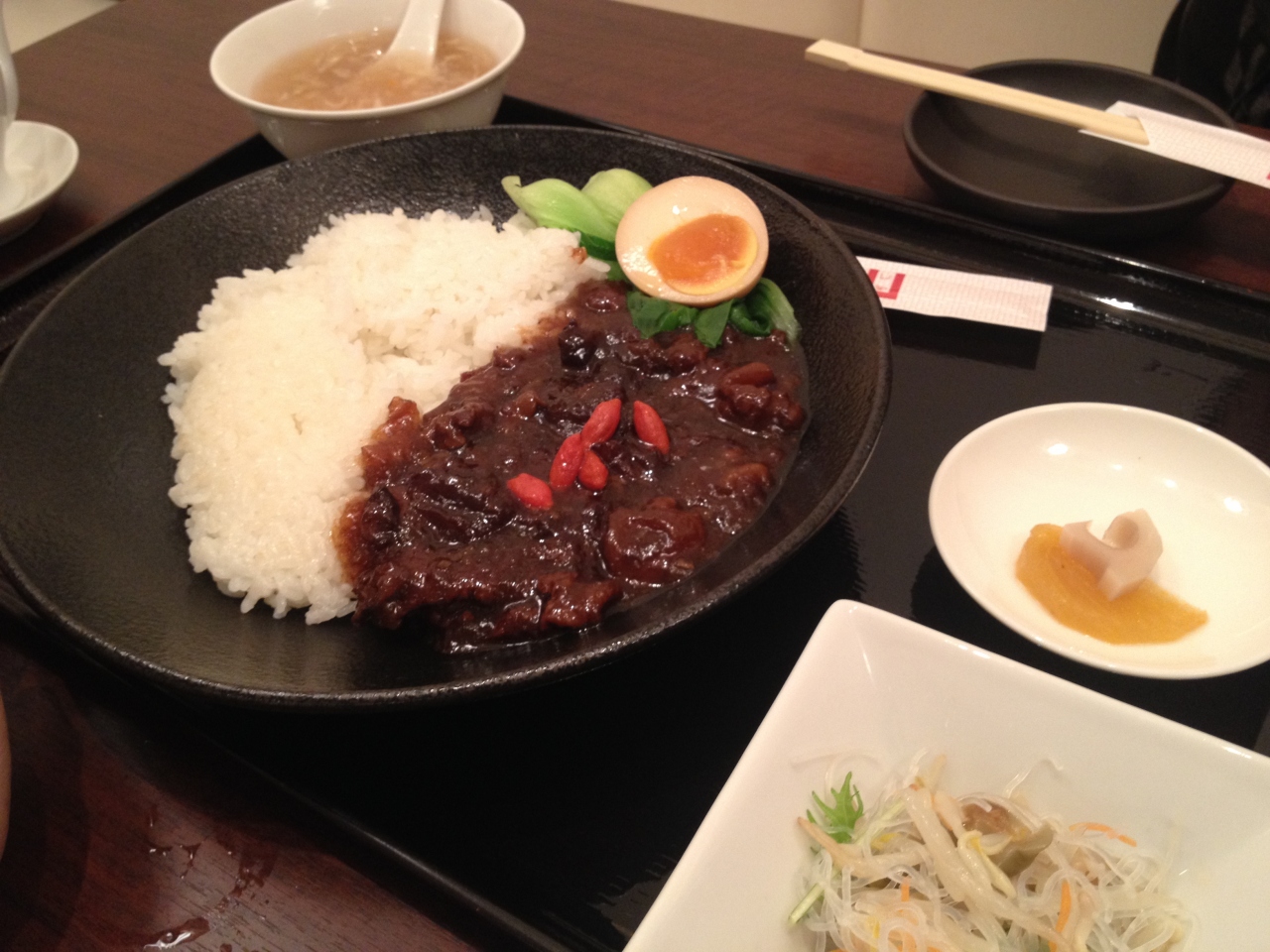 上野駅近くにある本格中華でランチ。「トロトロ牛すじ煮込みご飯セット/1350円」を注文。スープとサラダもセットになっていました。牛すじは柔らかく煮込んでありましたが、八角系の味が強すぎました。個人的には担々麺や麻婆豆腐のほうが好みでした。