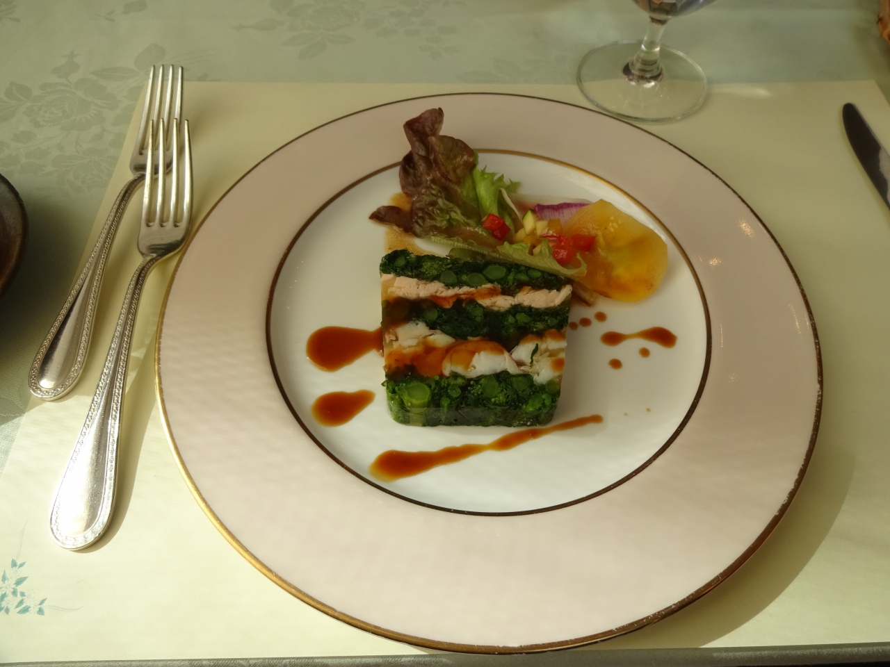 どれもおいしかったが、本日のオードブル、菜の花と海老などのテリーヌがとてもおいしく気に入った。