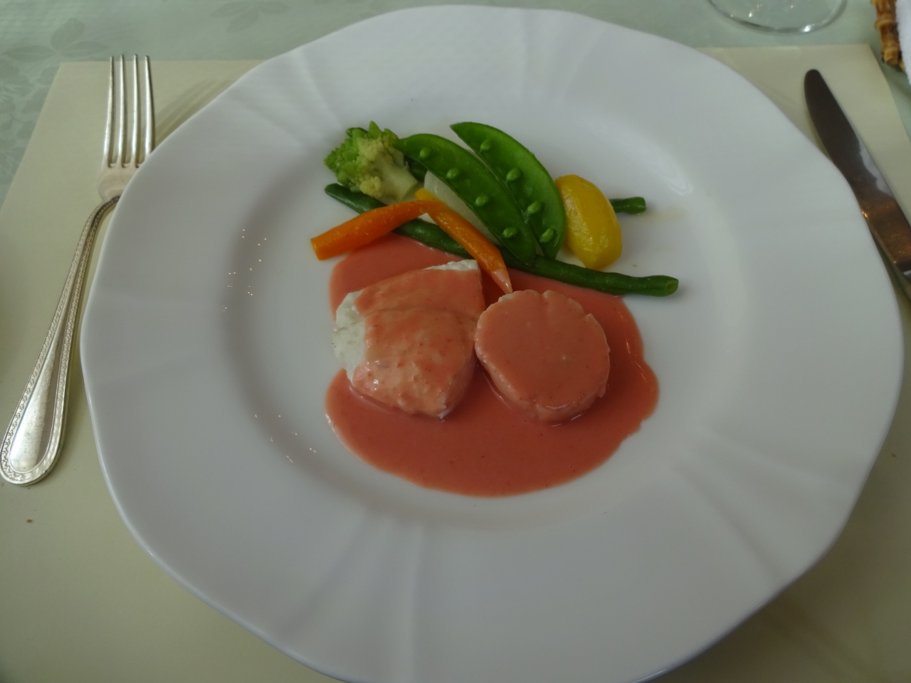 内容は本日のお奨めオードブル、スープ、メイン(魚または牛ヒレ)デザート、飲み物。