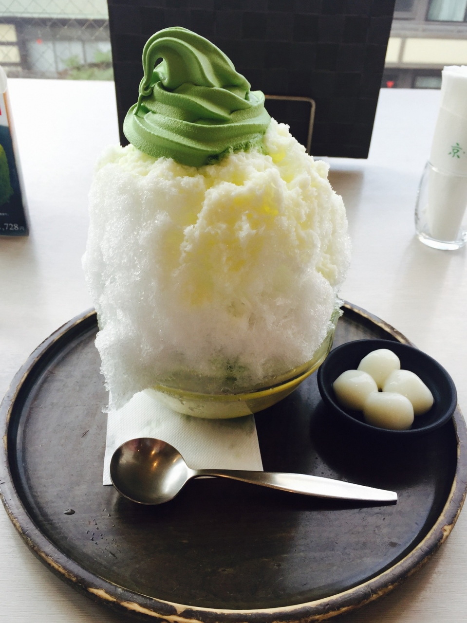 私はミルクのかき氷に抹茶のアイスが乗った普通のサイズを頼んだのですが、それでもかなり大きかったです。大きいサイズを頼んでいた方もいましたが、そちらは少し持ってくるのも大変な大きさでした。笑
