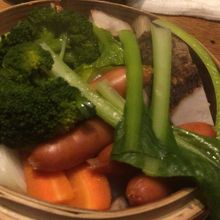 野菜蒸しは自分で、入り口付近にある野菜を蒸篭に入れて選べる