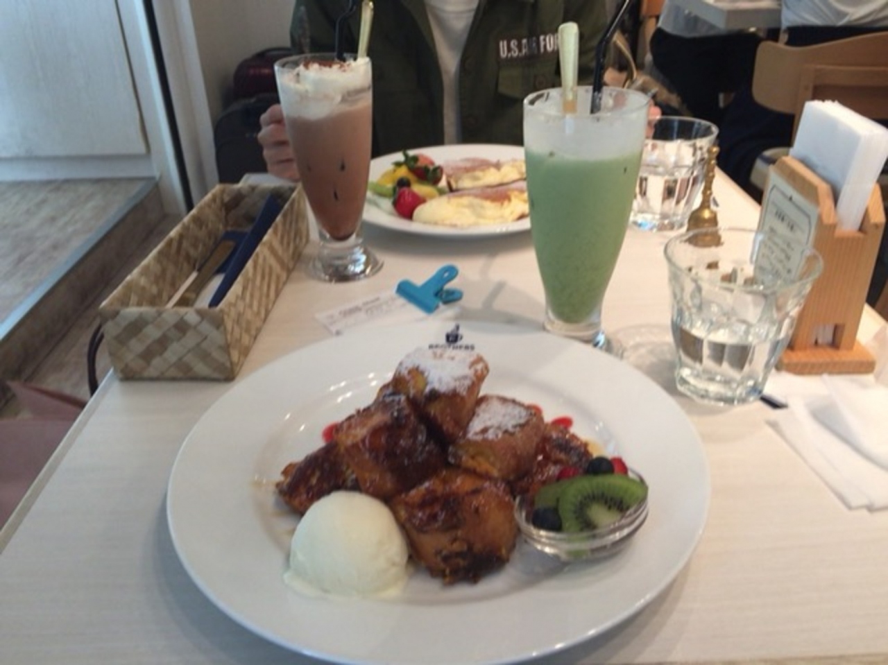 おやつの時間に行きましたが列が出来ており、30分程待ちました。店内はやはり女の子で賑わっていました。私はフレンチトーストと抹茶ラテを注文しましたが、フレンチトーストのかりかりしたところが特に、甘くて美味しかったです。ボリュームが結構ありました。