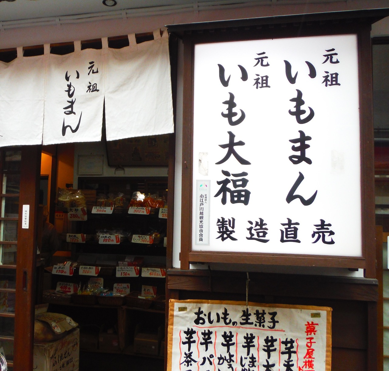 川越の菓子屋横丁にある、和菓子屋さんです。元祖いもまんと書いてある通り、いもまんが有名です。ほかにも芋を使った和菓子がたくさん揃っていて、芋好きにはたまらないです。いもまんのほかには、芋大福がおすすめです。