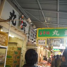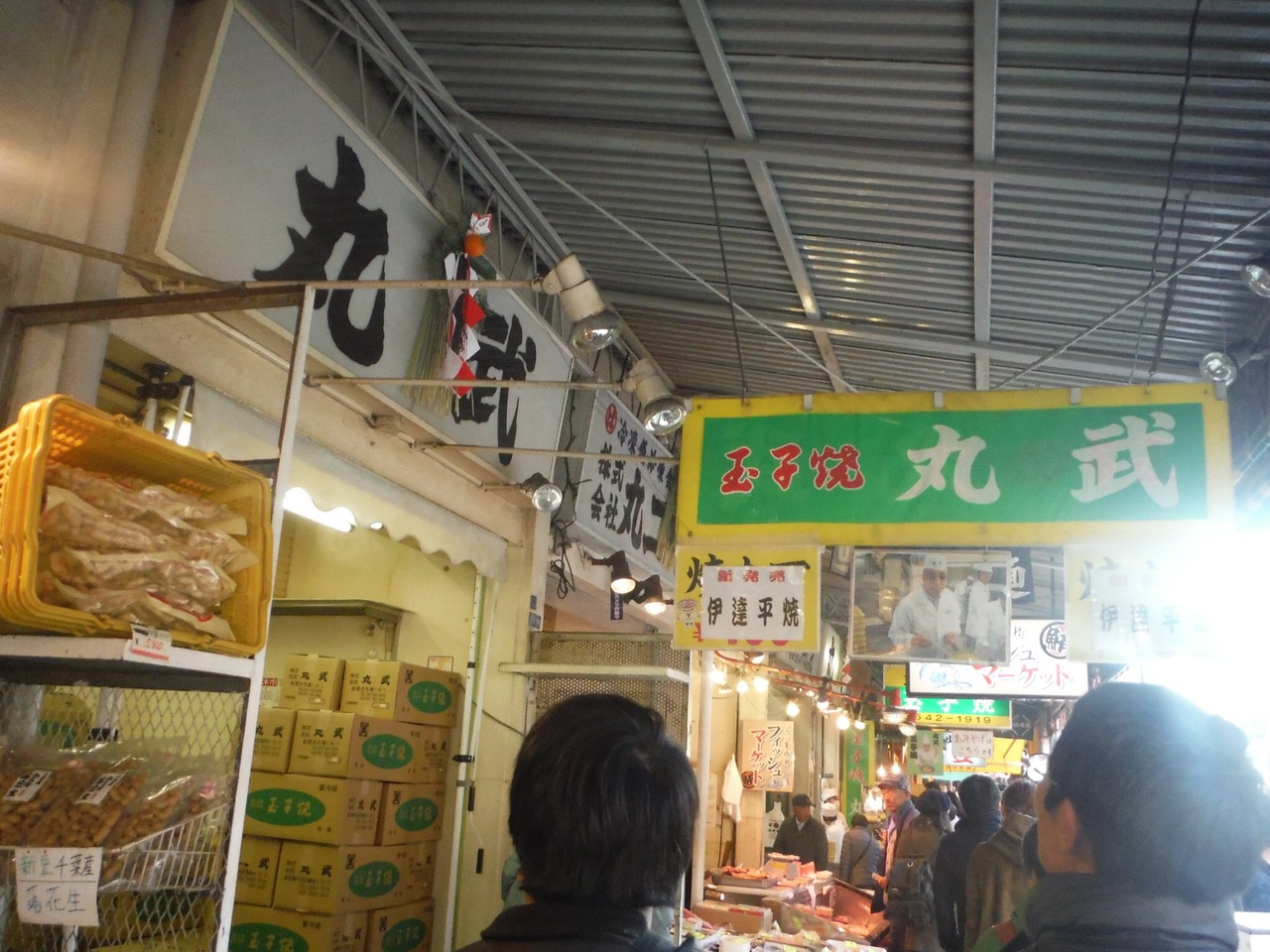 築地の場外市場にある厚焼き卵の専門店です。こちらのお店はテリー伊藤さんの実家として有名です。週末はたくさんの人で行列ができます。山長の厚焼き卵とは違い、串に刺さっているタイプではなくこちらの卵焼きはトレイにのっています。