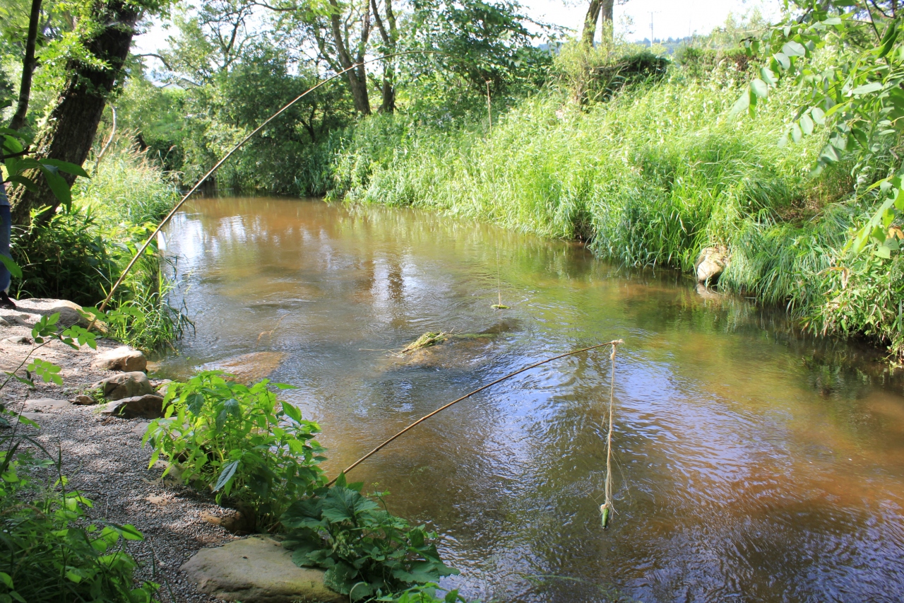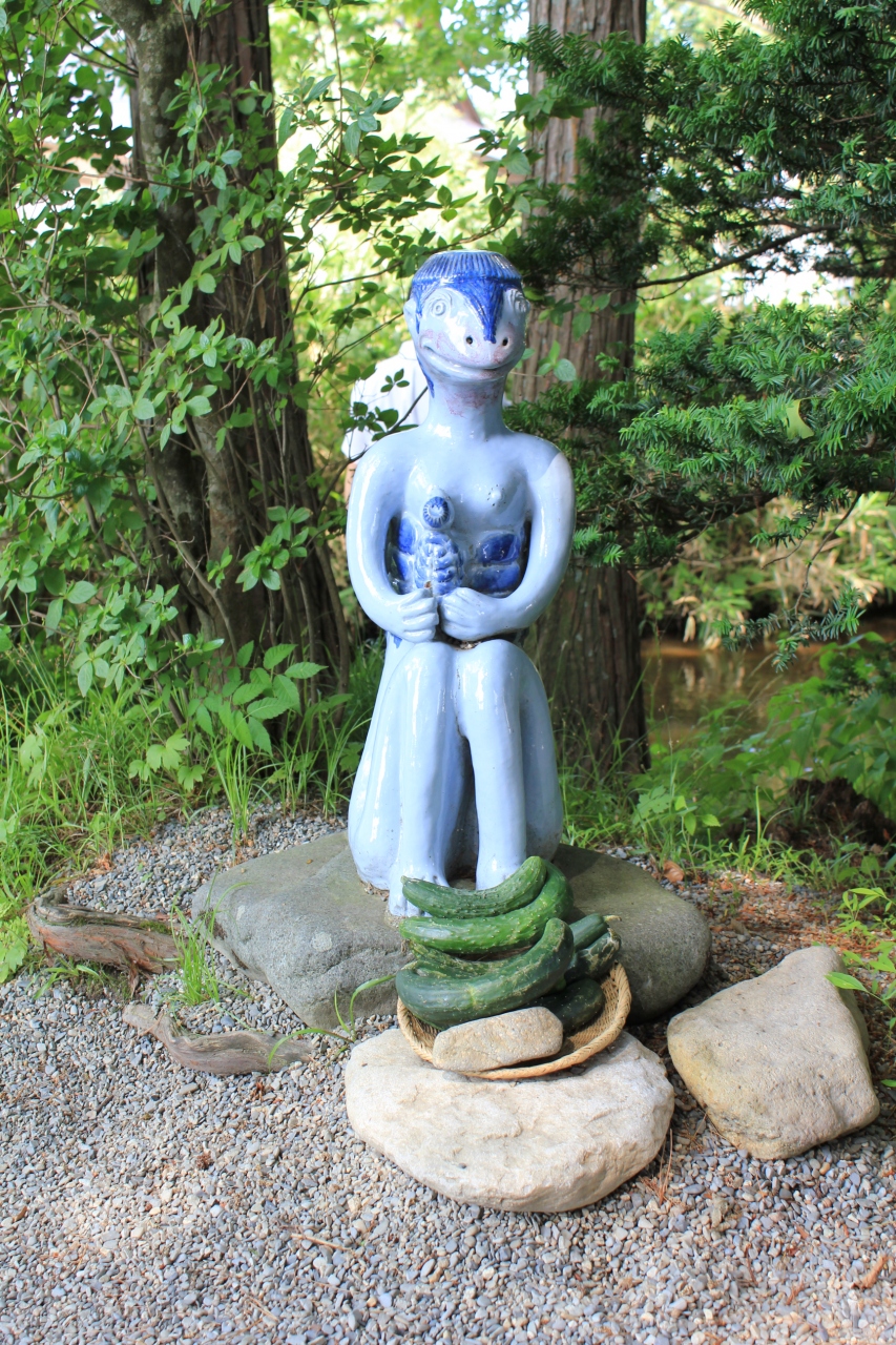 釣竿にきゅうりのエサがつけられていたり、河童の像にきゅうりのお供え物があったり本当にカッパが棲んでいそうな気がする・・・のどかですが、ちょっと不思議な場所でした。