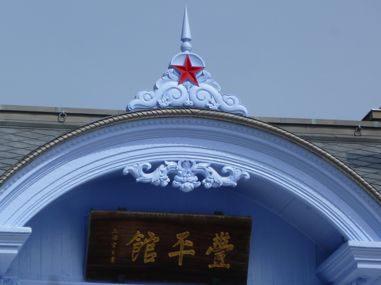 青いペンキ塗りの外観に開拓使の赤い星のマークのアクセントが所々に有り更に降り積もった雪とマッチしてとても綺麗でした。