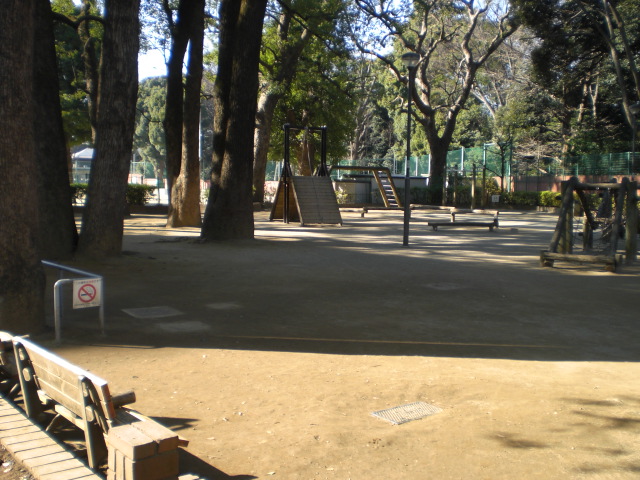 入口を入ると、正面には遊具を配した一般的な公園の構成ですが、左手(西側)には、運動公園とも言える運動施設が広がっています。