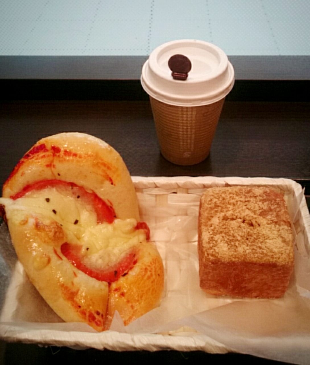 広島駅の在来線構内にありました。かなり狭いので人徳島のすれ違うときパンにぶつけそうでした。イートインコーナーもあります。コンセントがありました。人気のパンとコーヒーか紅茶がセットになったお得なものがありました。モッツァレラチーズのパンときな粉クリームデニッシュを頂きましたが、予想以上においしかったです。