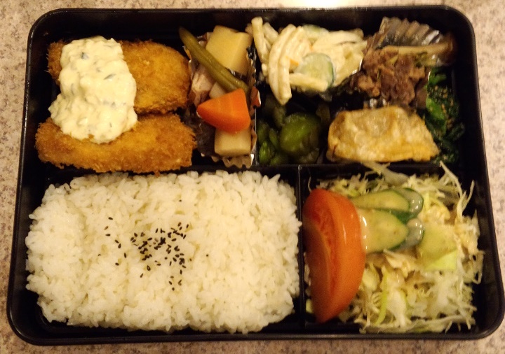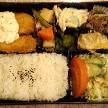 弁当の箱に入った日替わりは、フライの他にもおかずがいろいろと入っていて、ボリュームがあって美味しかったです。
