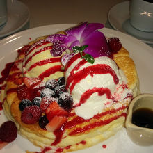 ホイップクリームたっぷりのパンケーキで、ボリュームがあります。