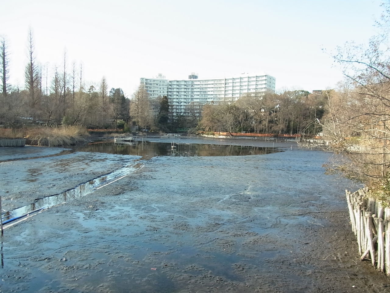 JR吉祥寺駅南口から徒歩15分くらいでしょうか。井の頭公園にある池です。一ニュースで報道されていましたが、池の大掃除で池の水が全て抜かれた状態です。何年かに一度行うそうですが、やはり水がないと寂しいですね。
