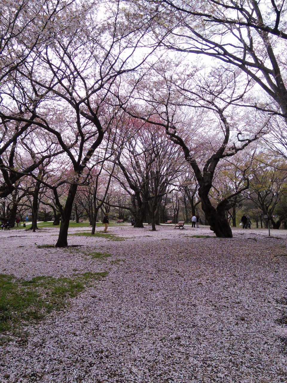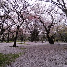 桜の園周辺は、まるで雪が降ったかのように一面淡い桜の花ビラでいっぱいになります。