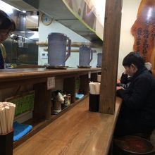 東急大井町駅から東に3分程の所にある白河ラーメンのお店です。店内はカウンター7席の小さい店ですが、人気のあるお店で、夕方の開店時間を少し回った17:35分に行くと4番目ですんなり入れましたが、すぐに満席となり、外にも人が並び出しました。