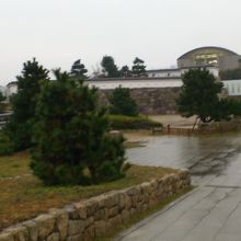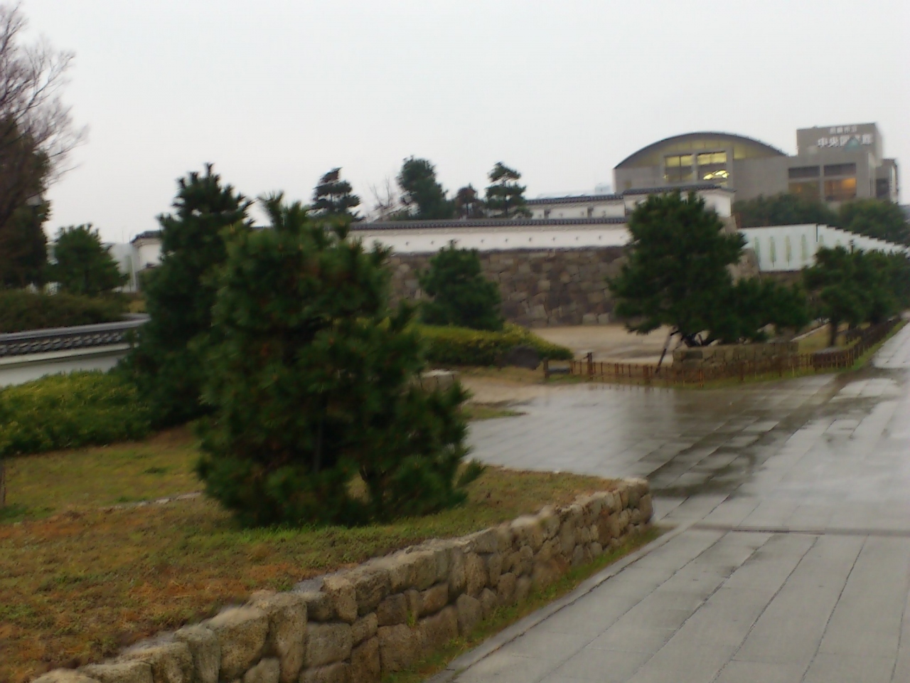 阪神尼崎の南口から左の方へ歩いて3分ほど行くと、石垣が見えて来ます。戸田氏のお城で、昔は天守閣のある大きなお城だったそうですが、今は当時の建物はありません。その代わり、尼崎市立図書館があります。石垣と庭園ぐらいしかありません。