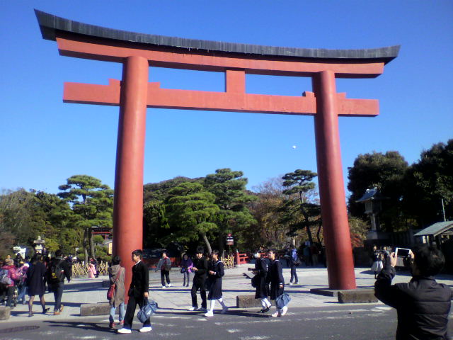 鎌倉の鶴岡八幡宮の参道には3つの鳥居があり、海側から一の、二の、三の…と続きます。こちらの三の鳥居は、鶴岡八幡宮の入り口、一番近いところに建つ鳥居です。