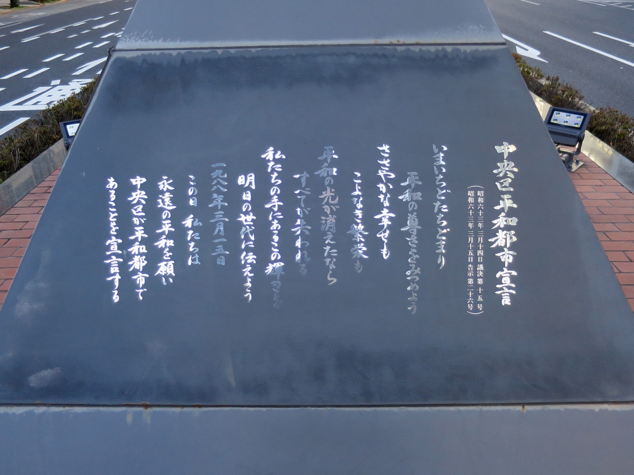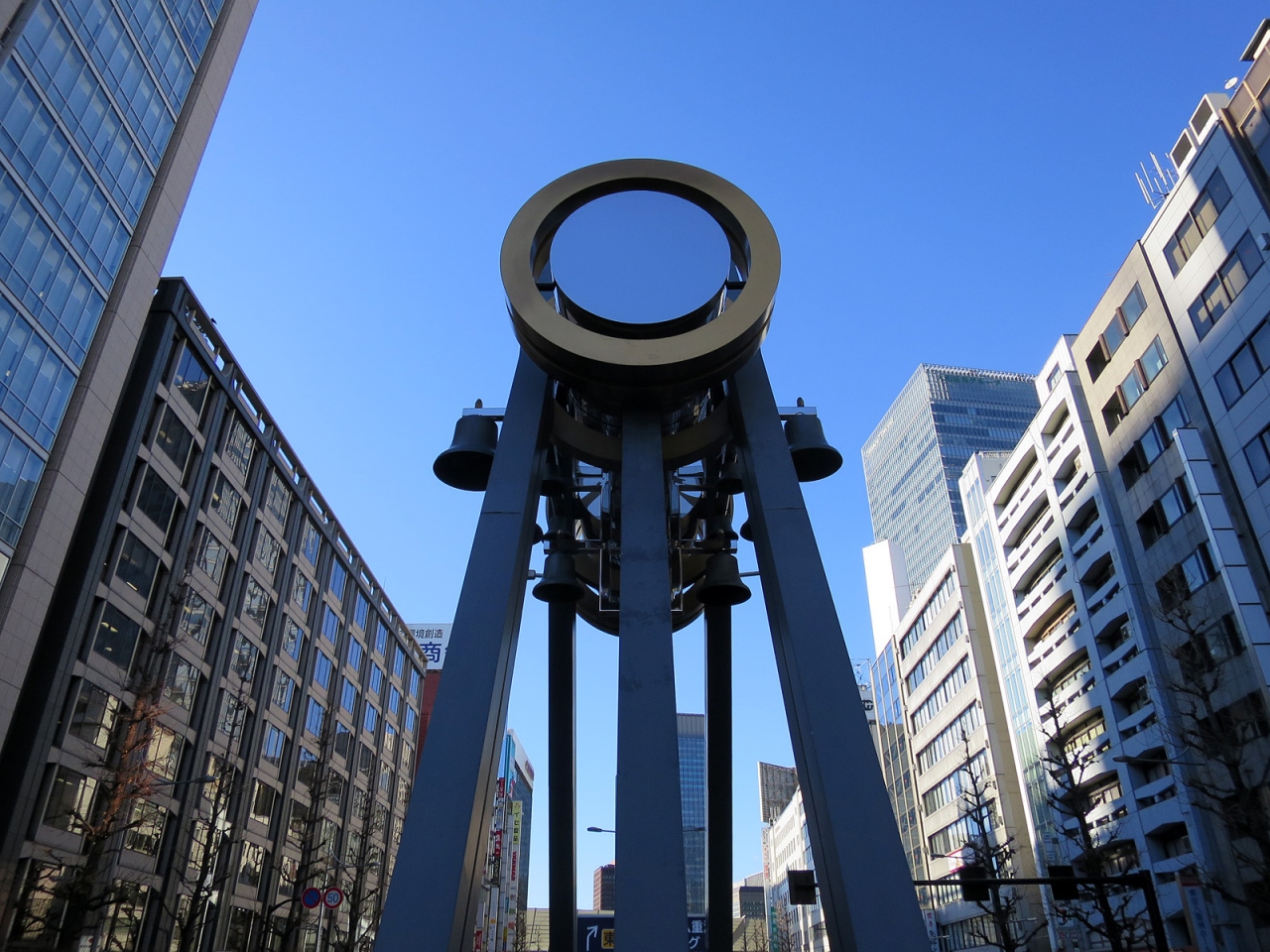 この「平和の鐘」に到着直前、初めて鐘の音を聞くことができました。何でも26個の鐘からなっていて、四季折々にメロディが奏でられるらしいのですが、次の機会はあるのかな…。すぐ近くには八重洲の語源となったヤンヨーステンの碑も存在するなど、オランダとの縁もあるからなのか、この鐘もオランダ製だということを知りました。