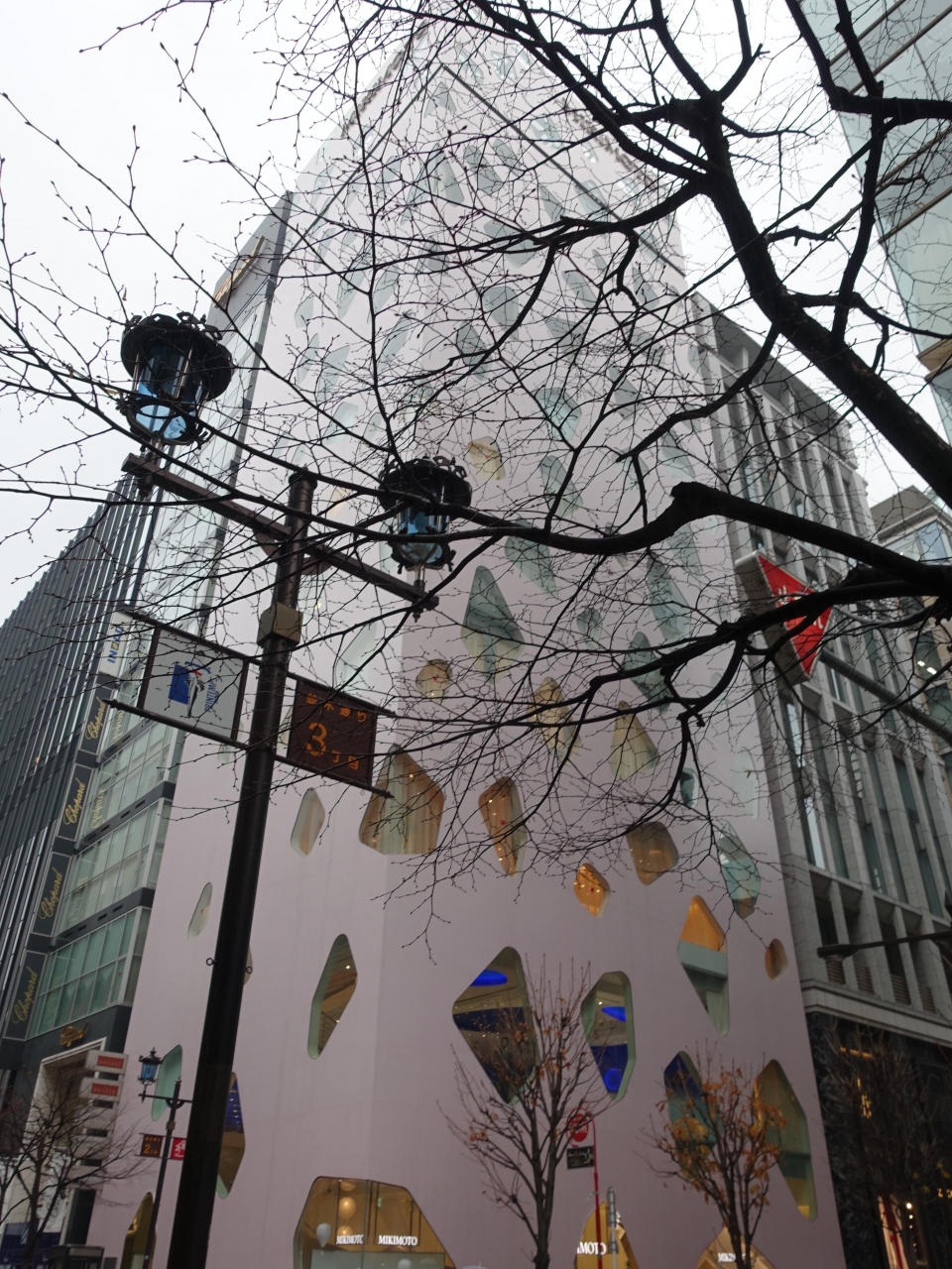 一月の雨の平日という事で、人通りは少なかったですが、このビルのインパクトは変わらず大きいです。