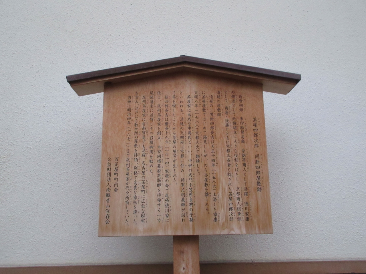 京都・阪急電車・烏丸駅から徒歩訳5分、「新町通蛸薬師下がる」に「茶屋四郎次郎邸跡」がありました。茶屋四郎次郎は、朱印船貿易の特権を得て巨万の富を築いた京都の豪商で、「京の三長者」と呼ばれました。今でも茶屋町という地名が残っています。今は石の杭が残るだけです。