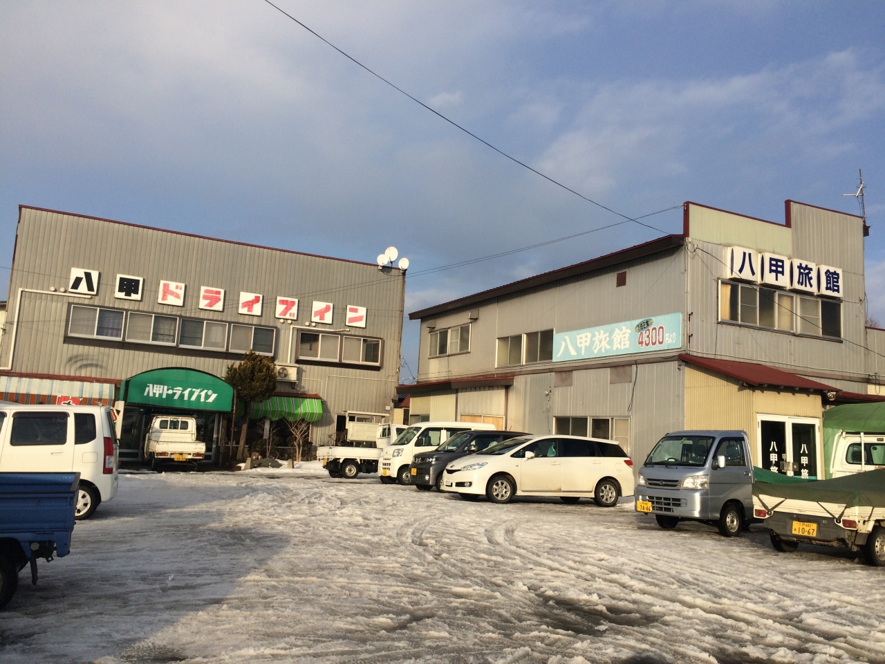上北駅から歩いて20分弱、ドライブイン?と旅館を併設した敷地にあり